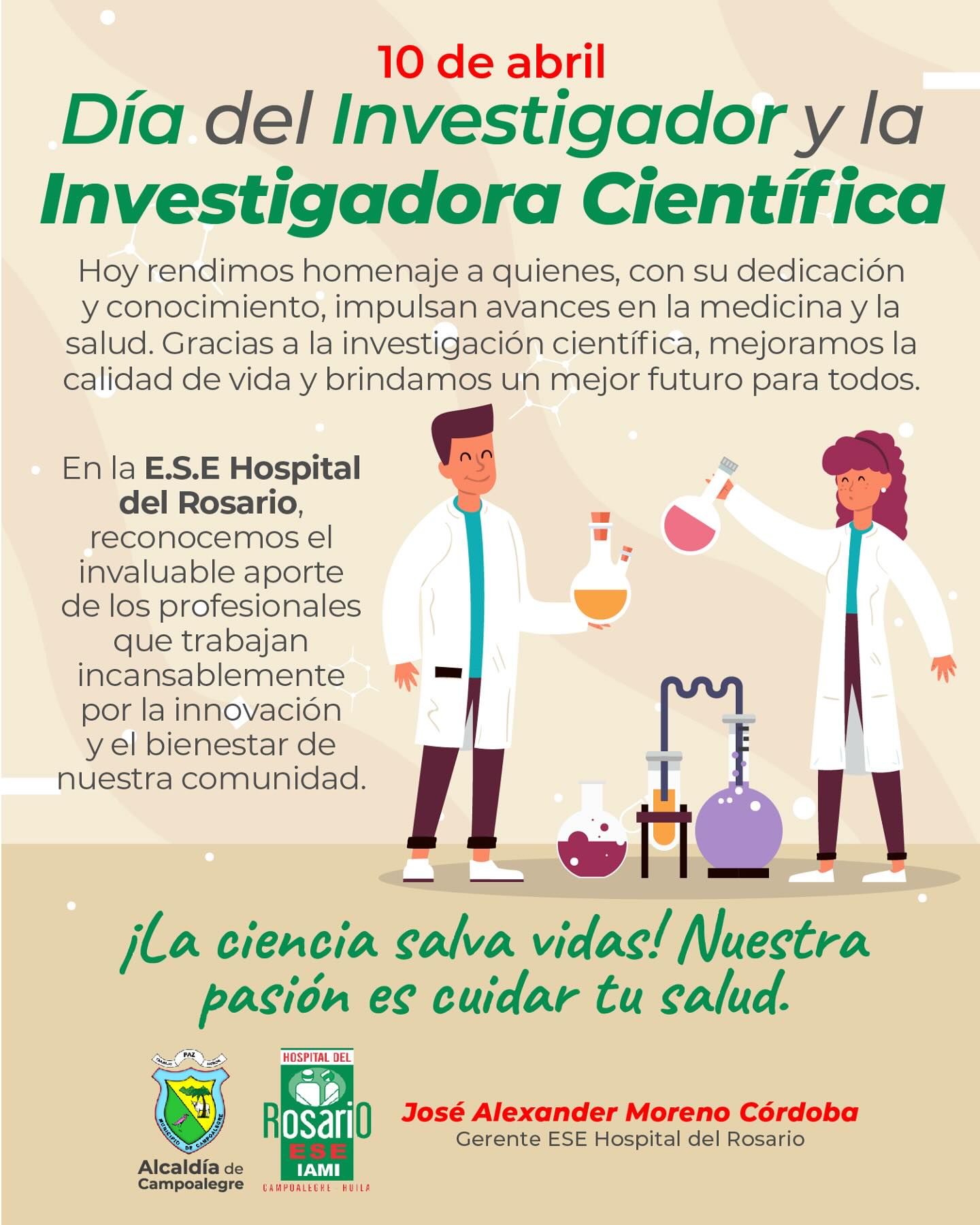 Hoy reconocemos a quienes, con su dedicación y conocimiento, impulsan avances en la salud. En la E.S.E Hospital del Rosario, valoramos su labor incansable para mejorar la calidad de vida de nuestra comunidad. #Campoalegre #HospitalDelRosario