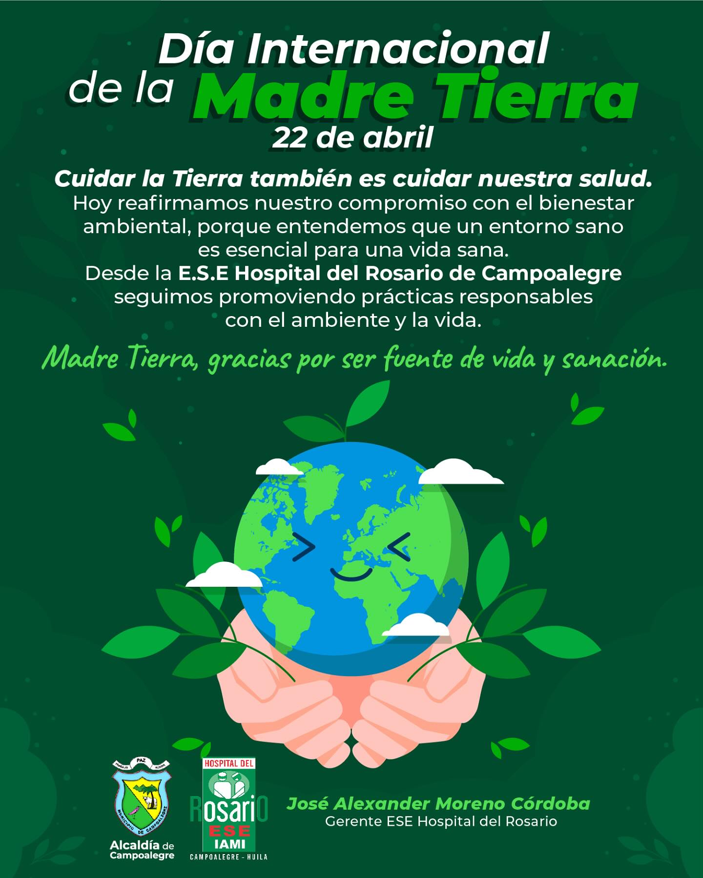 En la E.S.E. Hospital del Rosario de Campoalegre reafirmamos nuestro compromiso con prácticas responsables que promueven un entorno sano y una vida plena. Madre Tierra, gracias por ser fuente de vida y sanación. #HospitalDelRosario #Campoalegre