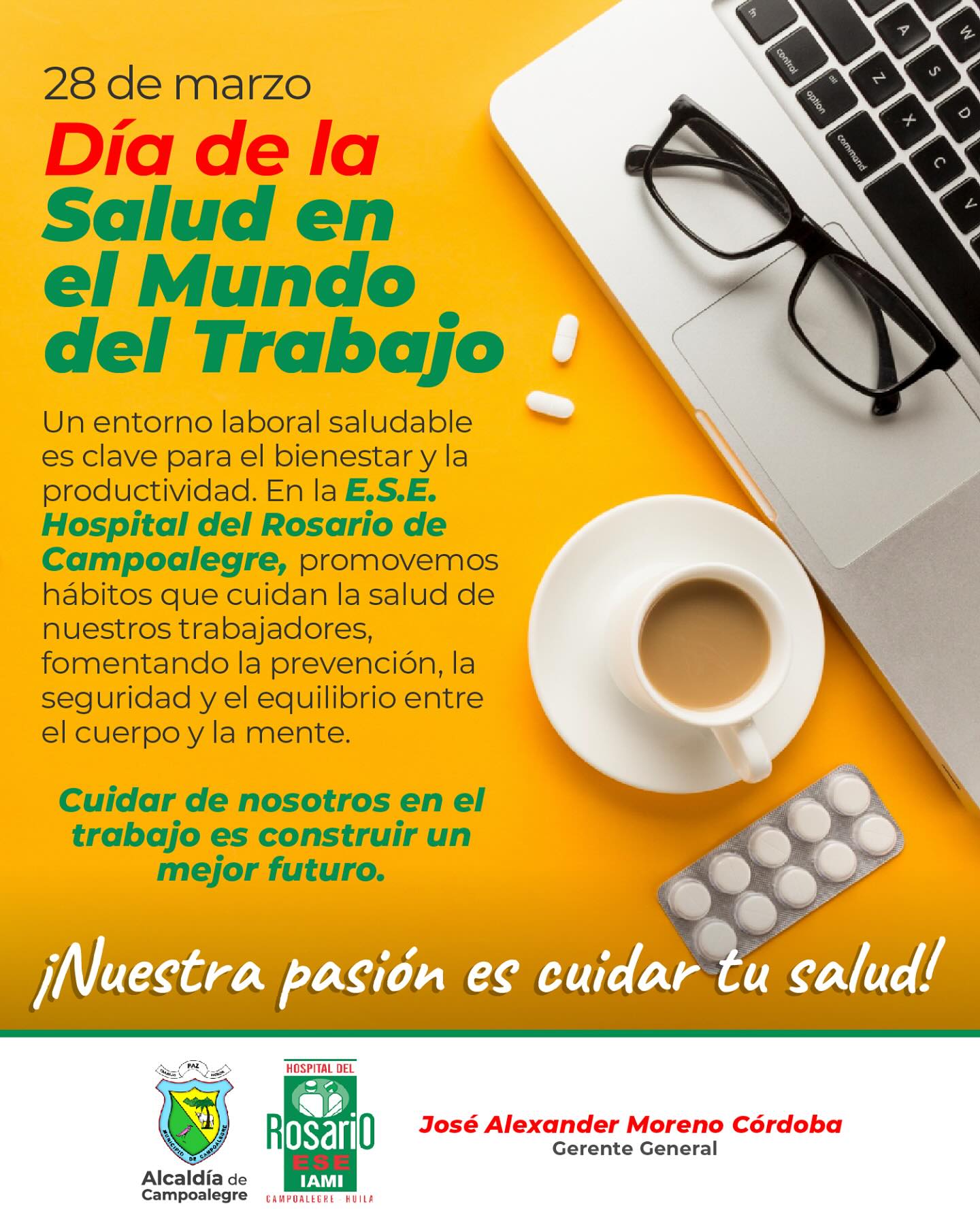 En la E.S.E. Hospital del Rosario de Campoalegre, promovemos entornos laborales saludables, priorizando la prevención, la seguridad y el bienestar integral de nuestros trabajadores. Cuidar la salud en el trabajo es construir un mejor futuro. Nuestra pasión es cuidar