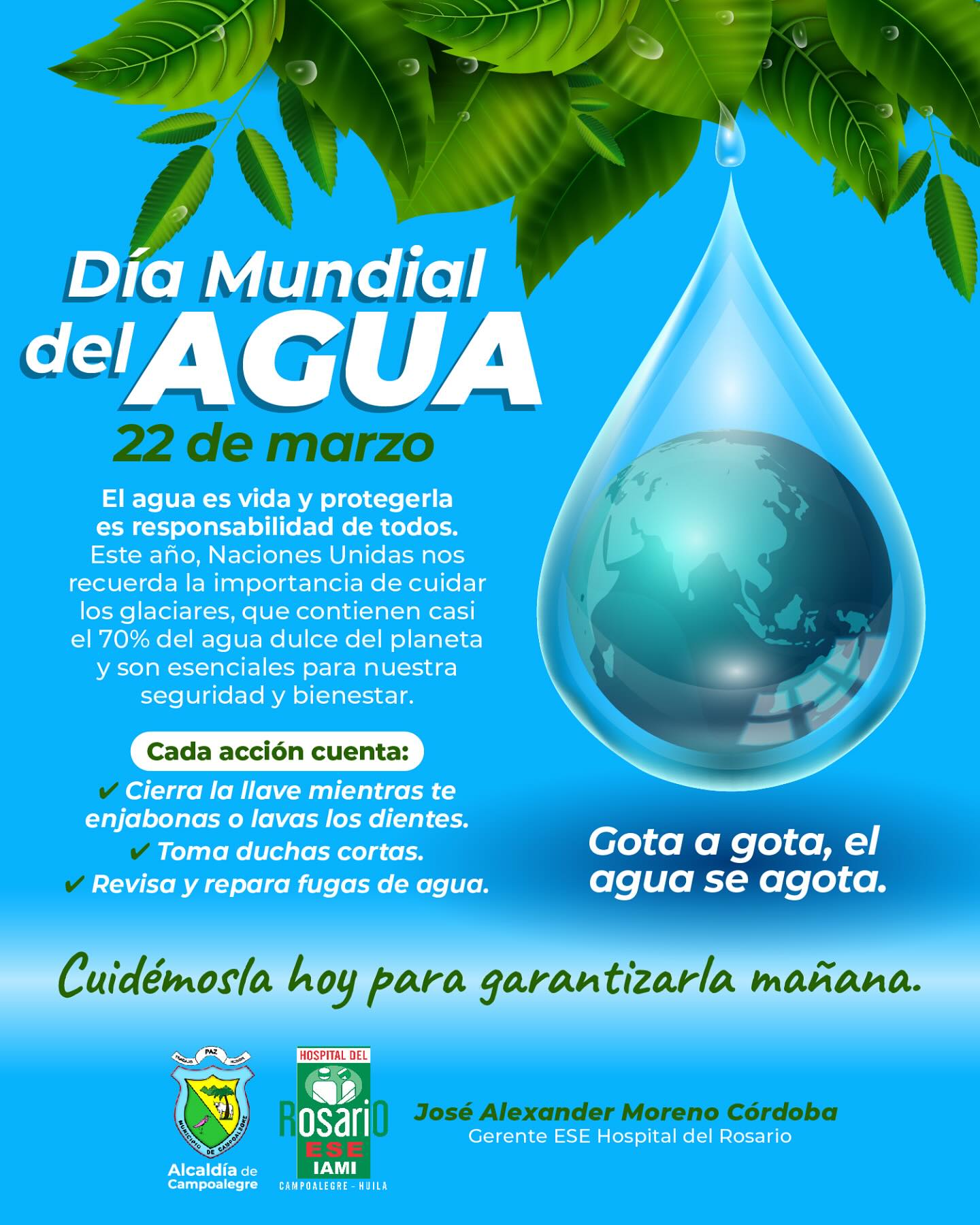 El agua es vida y protegerla es responsabilidad de todos. En el Hospital del Rosario, nos unimos al llamado de la ONU para cuidar este recurso esencial. Pequeñas acciones hacen la diferencia: Cierra la llave mientras te enjabonas o