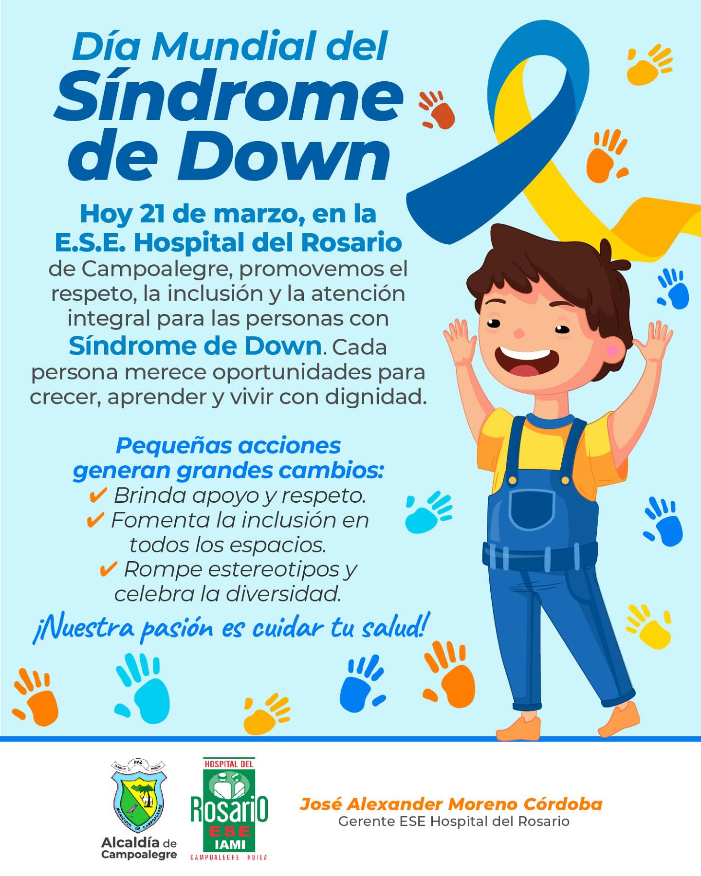 En la E.S.E. Hospital del Rosario de Campoalegre, reafirmamos nuestro compromiso con el respeto, la inclusión y la atención integral para las personas con Síndrome de Down. Cada persona merece oportunidades para crecer, aprender y vivir con dignidad. Pequeñas