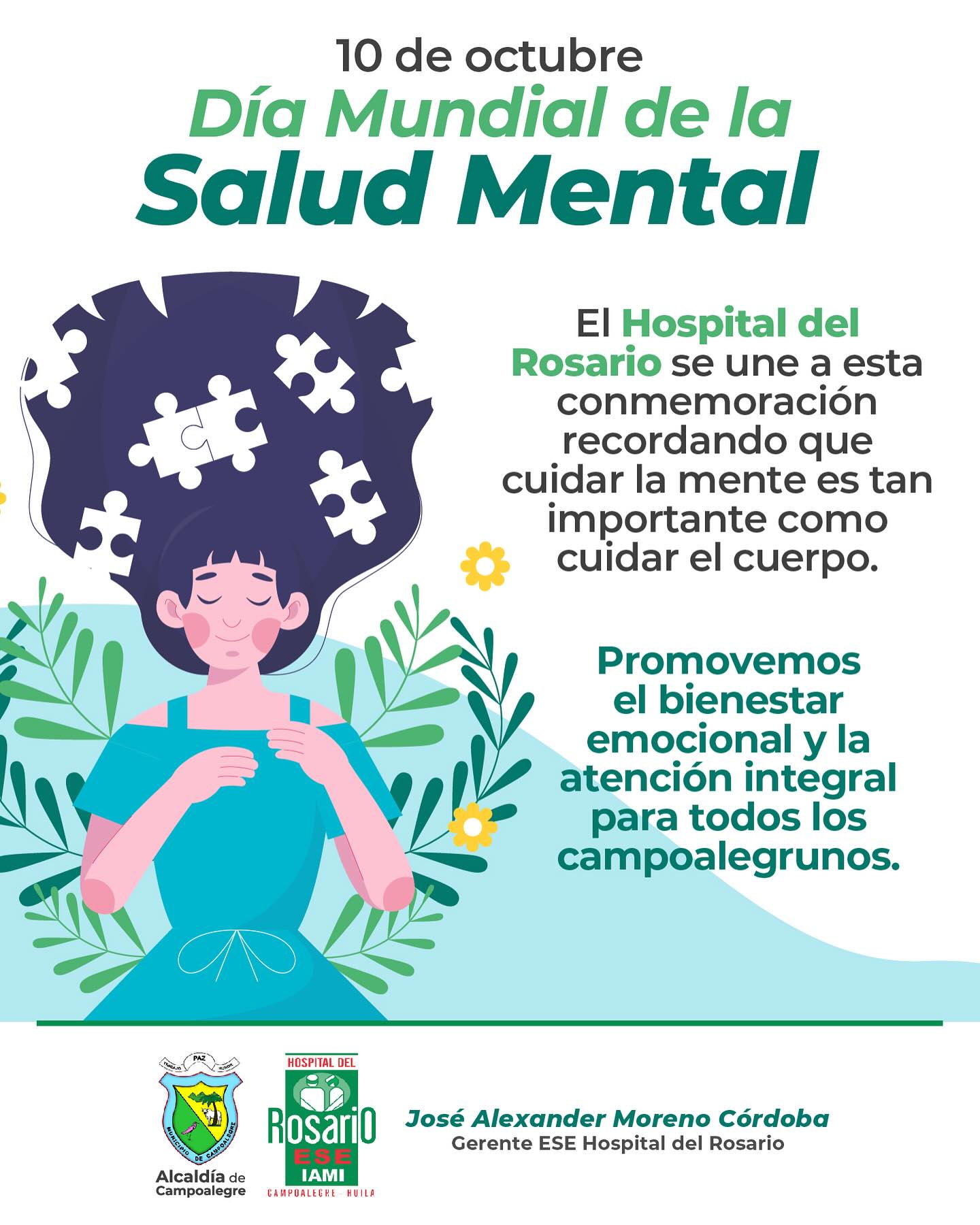 Desde la ESE Hospital del Rosario reafirmamos nuestro compromiso con el bienestar emocional, recordando que cuidar la mente es tan importante como cuidar el cuerpo. Promovemos una atención integral para toda la comunidad de