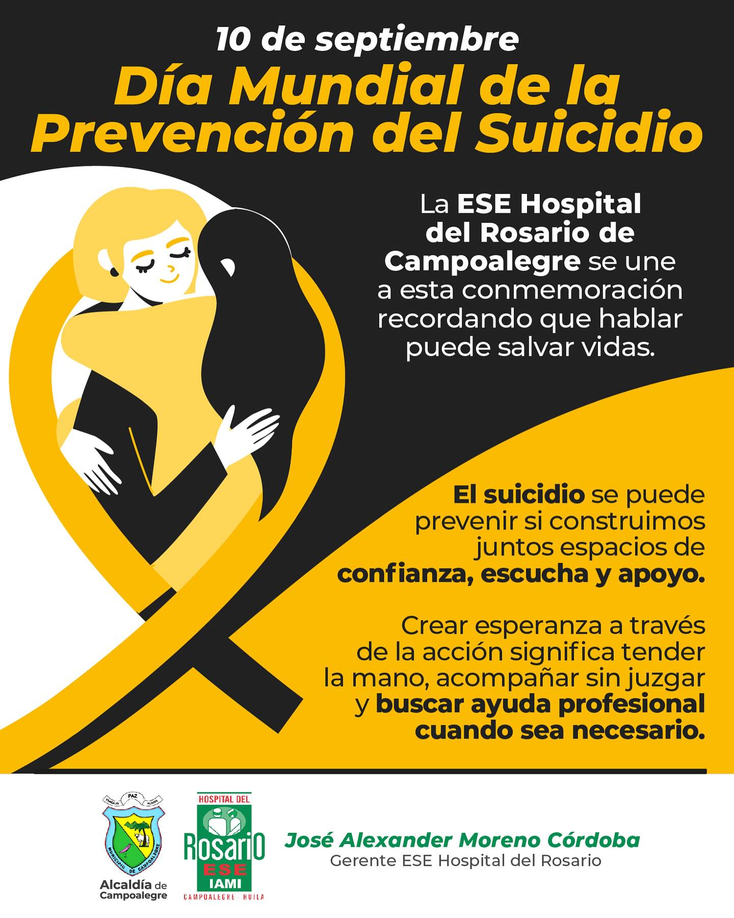 La ESE Hospital del Rosario de Campoalegre se une a esta importante conmemoración recordando que hablar puede salvar vidas hoy 10 de septiembre, Día Mundial de la Prevención del Suicidio. El suicidio se puede